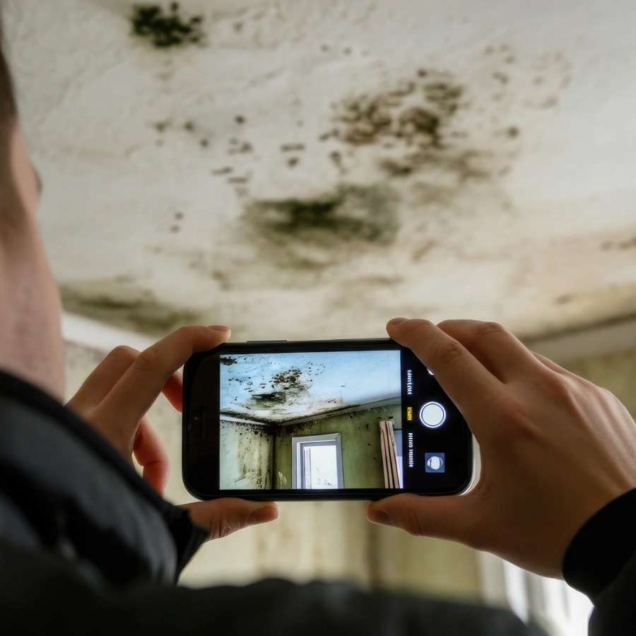 We start by discussing your concerns and inspecting visible areas for signs of mold. This helps us understand the possible cause and affected zones.